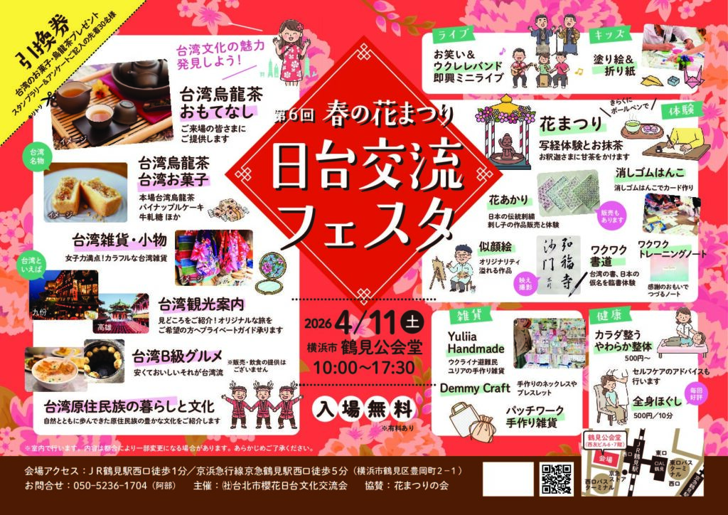 第6回「春の花まつり 日台交流フェスタ」が、2026年4月11日(土)に横浜市鶴見公会堂で開催されます。